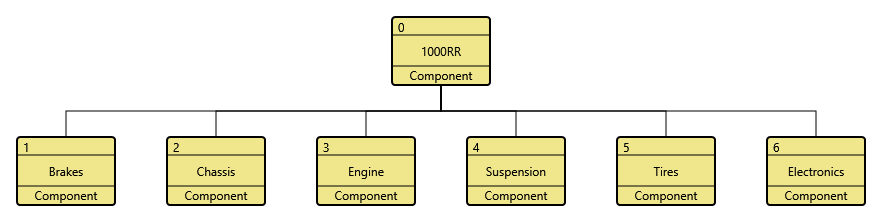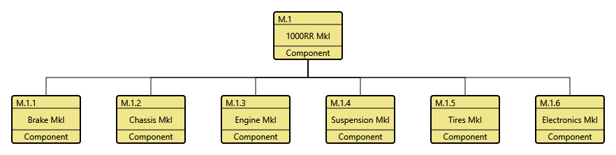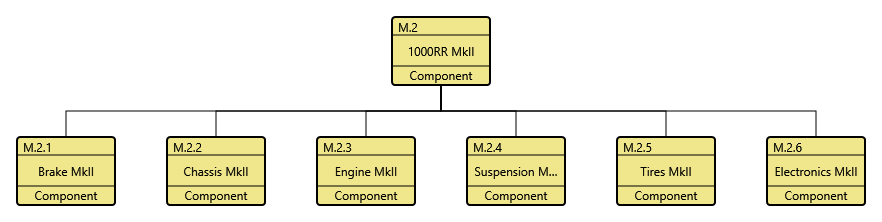 Now, onto what GENESYS can do very well in a trade study: setting a baselined physical configuration and creating traceability to different variants of the design. We can accomplish this by first decomposing the motorcycle (the 1000RR in this example) into its parts.