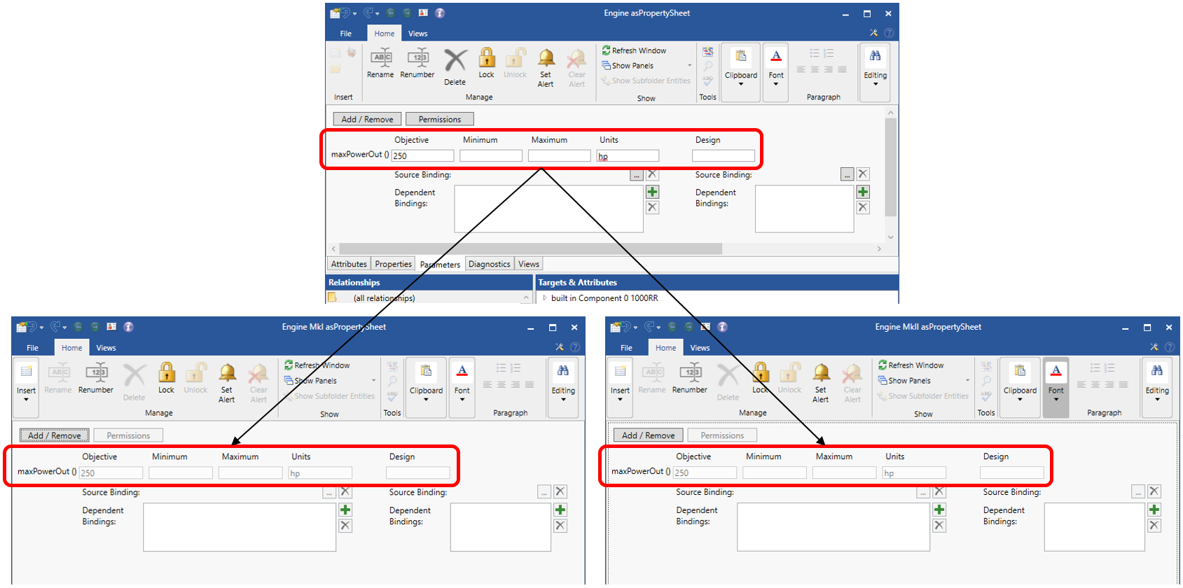 This way, whatever mathematical expressions and parameters that we know as having worked well to evaluate the baseline (from historical usage), will also work well to evaluate the two design options fairly and consistently. We will also have the parameter “max power output” (fictitiously created for the baselined Engine) inherited by the MkI Engine and MkII Engine.