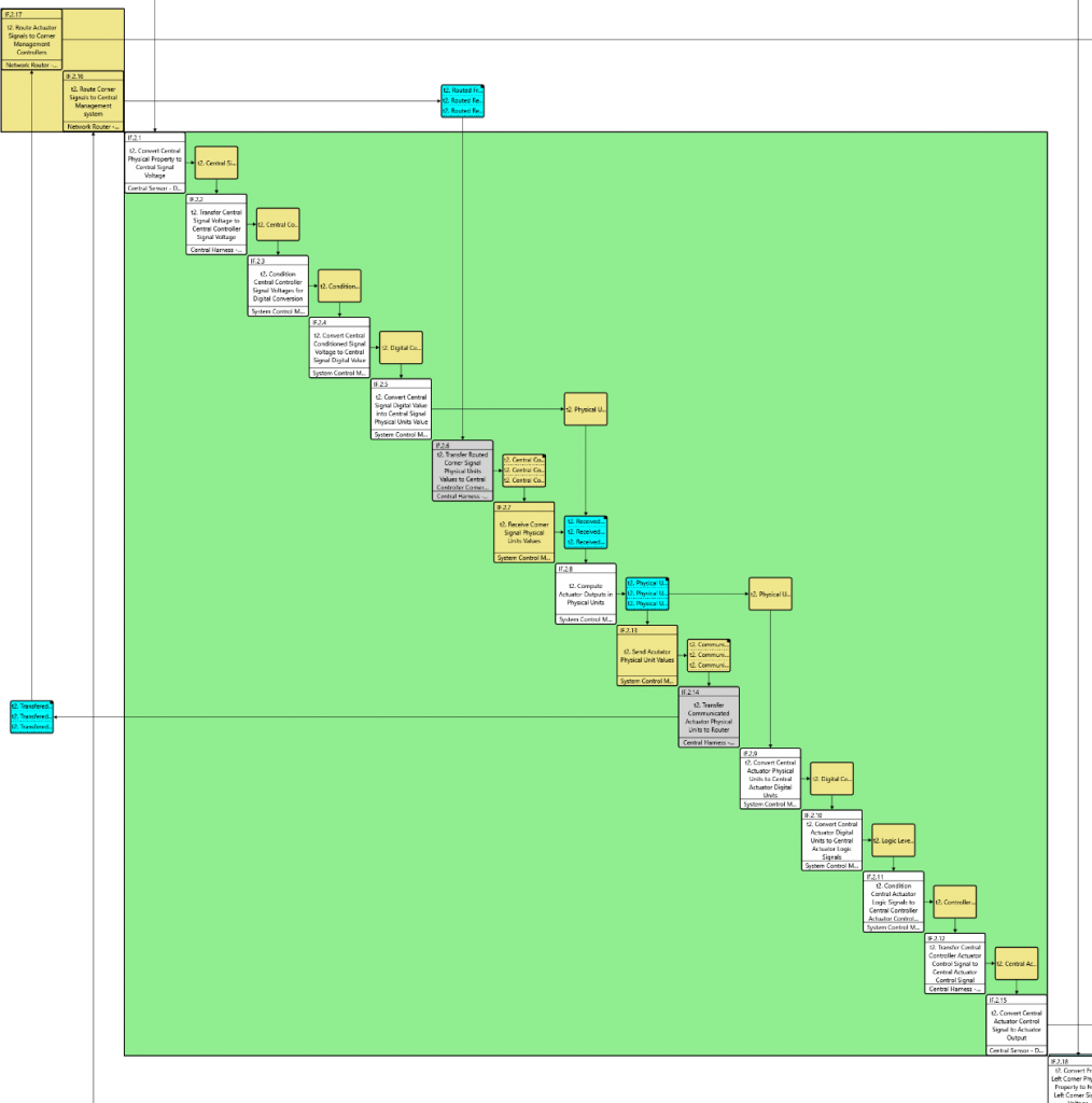 In part 1 of this blog, I presented an architectural object to reduce wiring in an automotive vehicle by transitioning from a centrally controlled corner management system to a distributed corner-controlled corner management system. The focus was on the physical domain impacts and I demonstrated what these systems looked like in N2 diagrams. The analysis showed that 4 controllers, a network router and 5 additional connectors were added to the systems physical design.