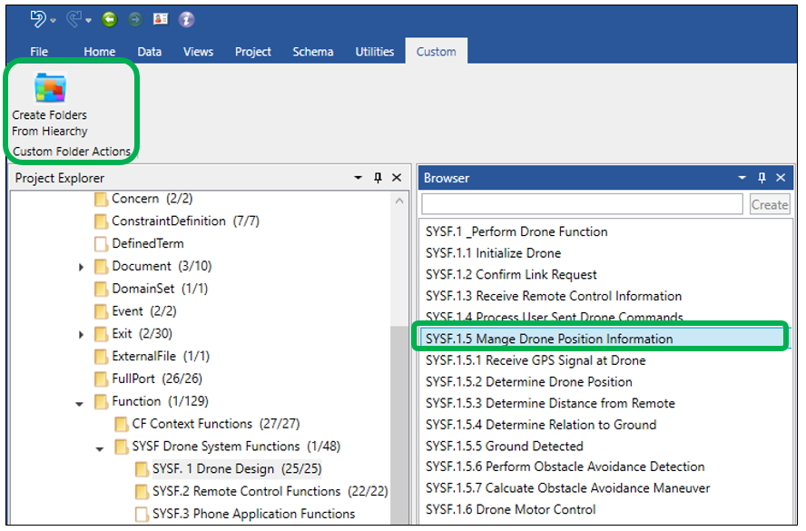 Here we can see the new folder was created underneath the parent folder, it was named after the selected entity including the number, and finally the entity and the entities related to it with the “decomposed by” relation have all been moved into the sub folder. A handy trick for sure!