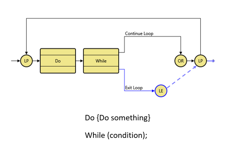 In the example diagram a Do-While loop was modeled, where something was done before the condition was checked. If you place the function after the condition is checked (on the Continue Loop Exit Condition) you would have the functional equivalent of a While-Do Loop.
