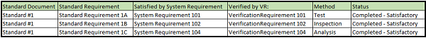 And, if you have developed a set of verification requirements, you can trace from the standard, to the system requirements, and thru to the verification requirements; essentially creating a verification cross reference demonstrating system performance to the standard.