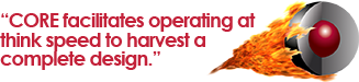 CORE 9 combines the ease of use of a drawing tool with the sheer power of a fully-featured database engine to allow designers to engage the flow of their thought processes in real time with the assurance that their ideas are being preserved and incorporated into a robust design with real integrity. Thanks to CORE, they can operate at think speed and still harvest the fruits of a careful and complete design.