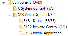 In this example, I created a folder to house the system context components, and then created folders for my System of Interest (SOI). It may not be necessary to create sub folders for the System Context level, as those all exist at the top context level, but we do want to create subfolders under the SYS Video Drone folder in order to clearly identify the subsystem breakdown. For a physical architecture best practice is to create a folder for every major subsystem, and perhaps create folders underneath the subsystem components to organize all the part level subcomponents. The level to which it makes sense to create a folder structure for is dictated by the level of the design.