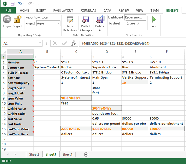 Once the design has been completed to a sufficient level of detail, the discipline engineer can use the Excel Connector to pull the model’s data out of the GENESYS repository to be used in the optimization calculations. In doing so, the design engineer does not need to be familiar with GENESYS. Instead, the design engineer works solely within an environment with which they are intimated familiar.