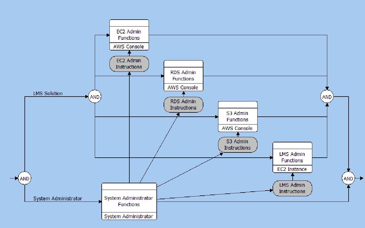 In the EFFBD below the administrative behavior is represented in a simple abstraction. The administration actions are represented simply using Items as Data Stores.