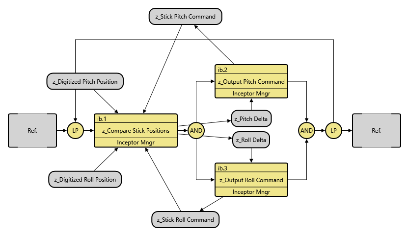 “Thank you for restarting on time. Hopefully, we can get through this in ten minutes. Suppose, this is how our Inceptor Manager in the VMS works to read a flight-stick input to command manual pitch and roll for the GNC. These functions execute in a pre-defined loop frequency, specific to the Inceptor Manager CSCI. This part of the functional flow is already defined in our system integrated behavior. Now, if we want to use the functional domain to demonstrate how the pilot uses the stick to hand-fly, as an example, it would look like this at the context level.”