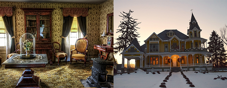These two pictures show a style, a design, a structure, a plan, an instantiation, and a product, and can be developed from a set of blueprints. They are a classic representation of basic building architecture.